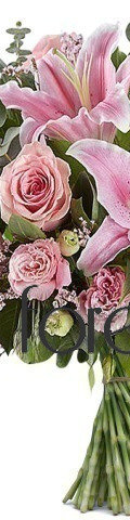 7 x Pink Stargazer Lilies, 7 x Pink Roses, 3 x Pink Carnations, Eucalyptus